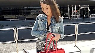 busz, szoknya alatt, ruhában, nyílvános
